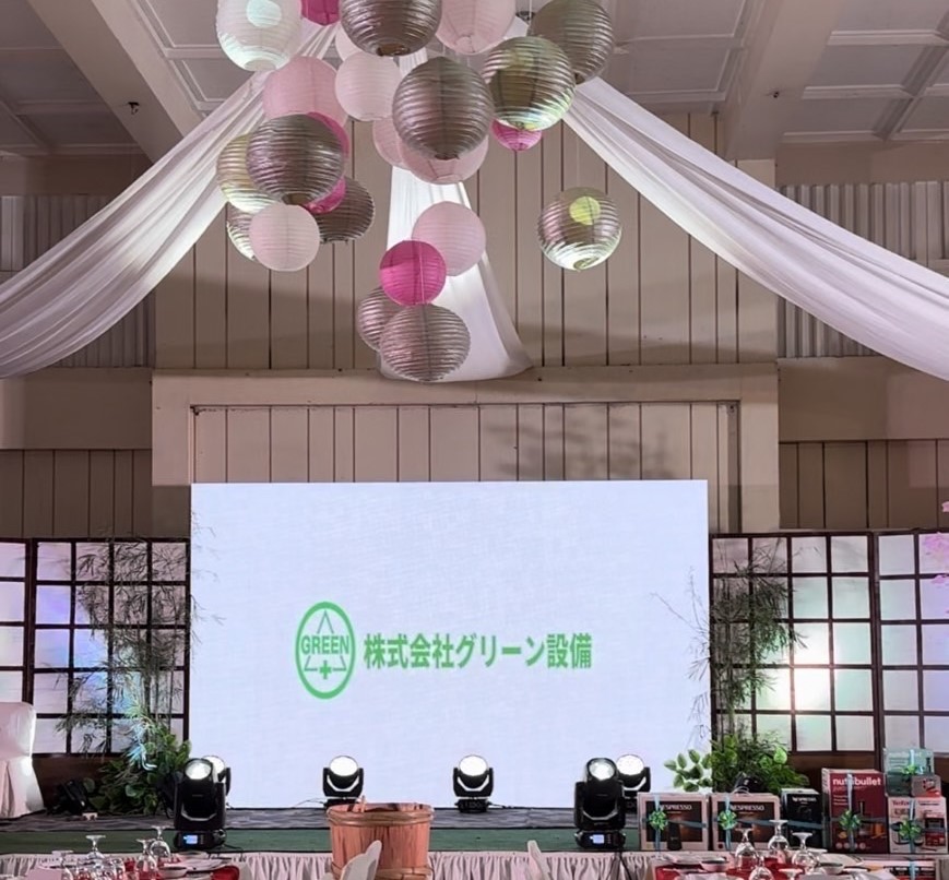 夜のパーティーでも㈱グリーン設備を盛大に紹介していただきました